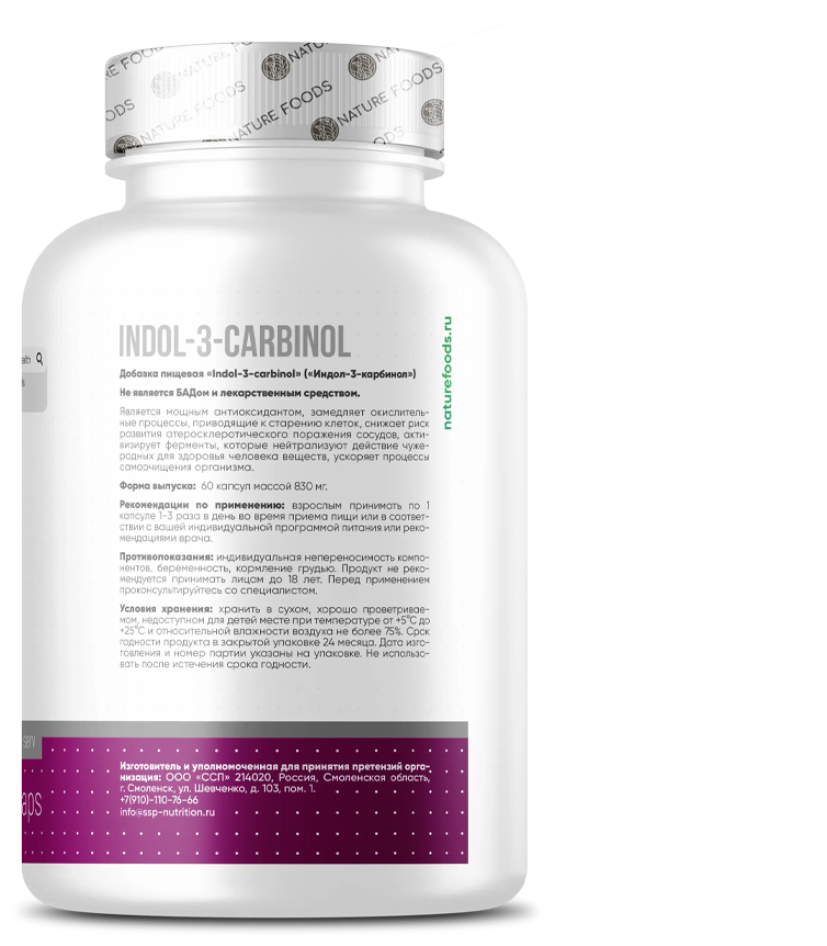 Indol-3-Carbinol - это мощный антиоксидант, который замедляет процессы окисления, что способствует старению клеток. Он снижает риск развития атеросклеротических поражений сосудов и активирует ферменты, нейтрализующие вредные для организма вещества. Благодаря этому ускоряются процессы самоочищения организма.