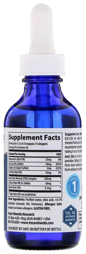 Trace Minerals Ionic Zinc 50 mg, 59 мл