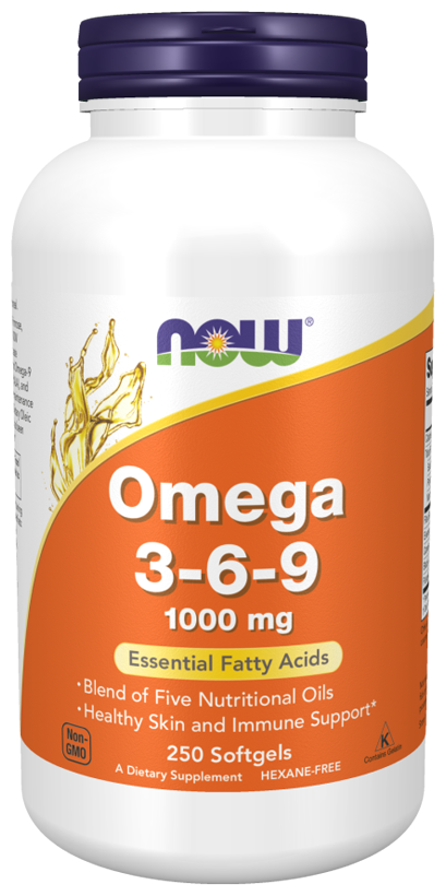 Омега 3-6-9 представляет собой смесь масел семян льна, первоцвета вечернего, канолы, черной смородины и тыквенных семечек. Now сочетает в себе эти известные питательные масла для создания сбалансированных пропорций жирных кислот омега-3, омега-6 и омега-9. Омега-3, альфа-линоленовая кислота (АЛК) и омега-6, ГЛК, играют важную роль в поддержании здоровья кожи и функции иммунной системы. Пищевая олеиновая кислота, мононенасыщенная жирная кислота омега-9, связана со здоровьем сердечно-сосудистой системы.