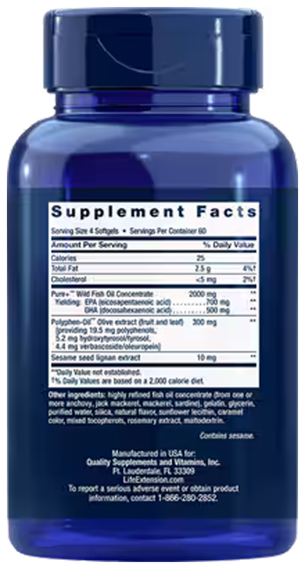 Life Extension Super Omega-3 EPA/DHA Fish Oil, Sesame Lignans & Olive Extract, 240 капсул
