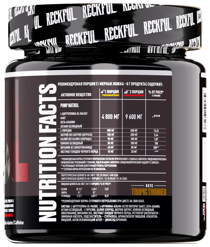 Reckful The Pump позволит вам добиться невероятной эффективности ваших тренировок. Силовые показатели, выносливость и концентрация поднимутся до непривычных высот.