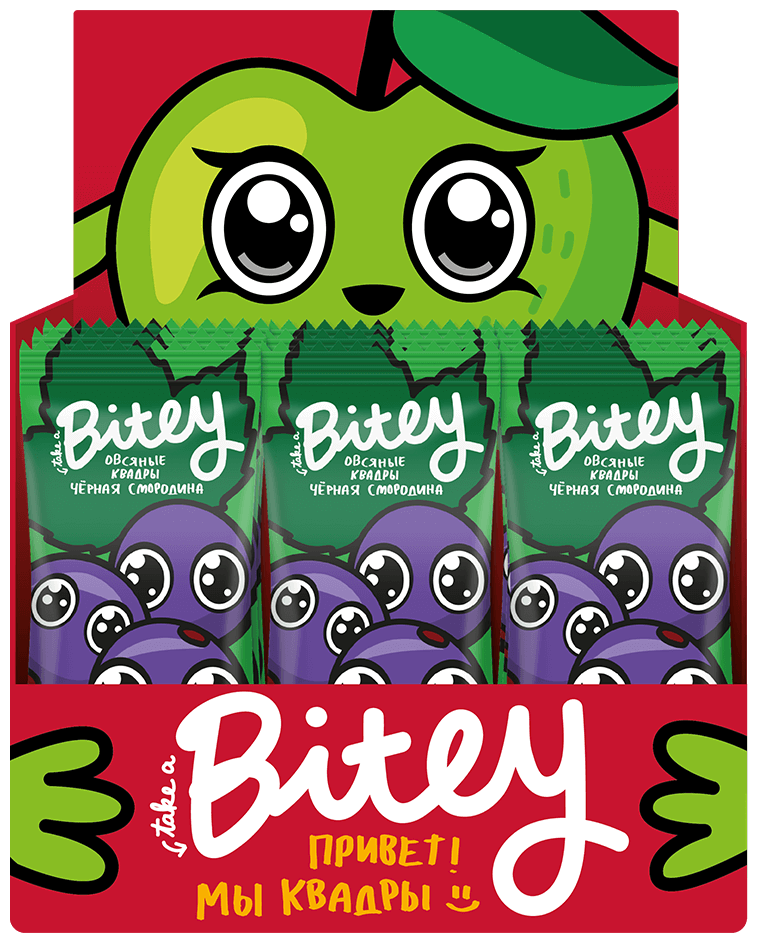 Квадры Bitey — это овсяно-фруктовый снек из натуральных ингредиентов, сделанный в России. В каждой упаковке две порции питательного перекуса из натуральных фруктов и злаков в форме квадратиков. И все это без консервантов, сахара, лактозы и глютена!