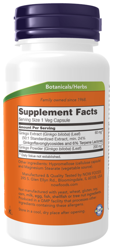 NOW Ginkgo Biloba 60 mg, 60 капсул