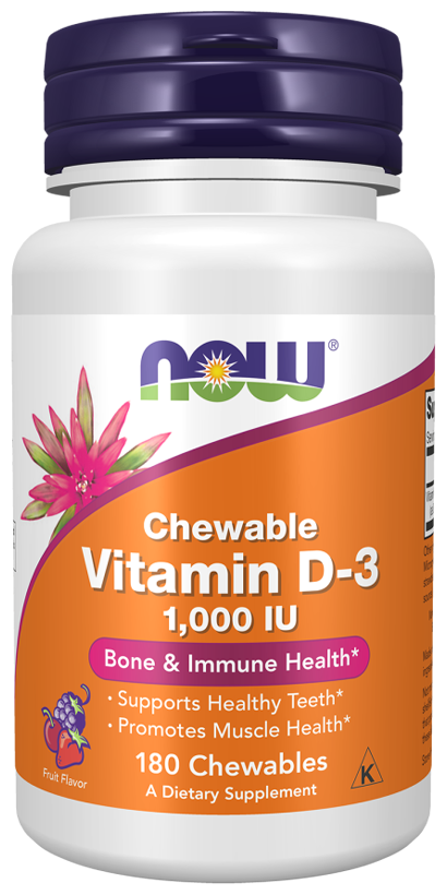 NOW Chewable Vitamin D-3 поставляет этот ключевой витамин во вкусной жевательной форме. Витамин D обычно поступает из рациона или вырабатывается кожей из ультрафиолетовой энергии солнца. Однако в пище его не так много. Поскольку все больше людей избегают пребывания на солнце, добавки витамина D становятся еще более необходимыми для обеспечения вашего организма достаточным его запасом.
