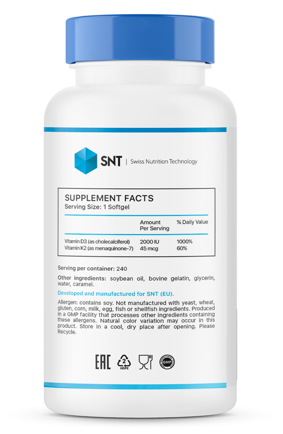 SNT Vitamin D3 + K2 2000 IU, 240 капсул