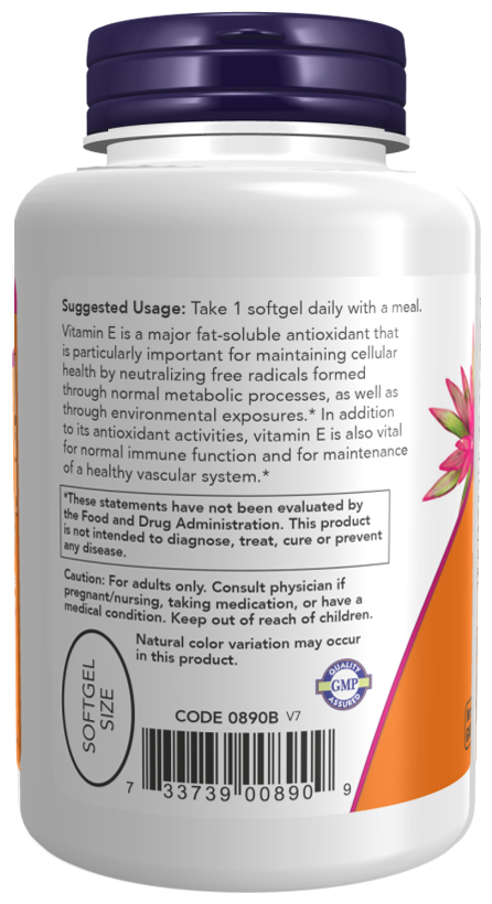Витамин Е является основным жирорастворимым антиоксидантом, который особенно важен для поддержания здоровья клеток за счет нейтрализации свободных радикалов, образующихся в ходе нормальных метаболических процессов, а также в результате воздействия окружающей среды. Помимо антиоксидантной активности витамин E также жизненно важен для нормальной иммунной функции и для поддержания здоровья сосудистой системы.