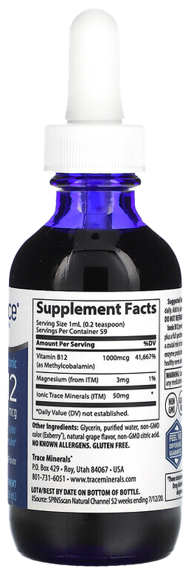 Ионный B12 - содержит 1000 мкг витамина B12 на порцию, а также полный спектр естественных ионных микроэлементов в ионной форме. Витамин B12 играет решающую роль во многих метаболических функциях, включая производство ферментов, синтез ДНК, гормональный баланс, а также здоровую нервную и сердечно-сосудистую функции.