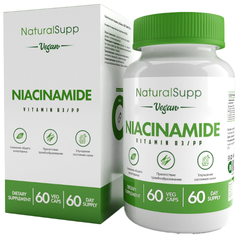Витамин В3 (Ниацинамид) - это амид никотиновой кислоты, водорастворимый витамин, играющий жизненно важную роль в преобразовании энергии и поддержании общего состояния здоровья. Он участвует во многих окислительно-восстановительных реакциях и в образовании ферментов.