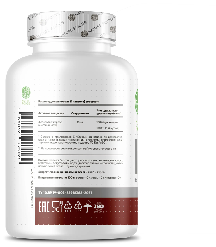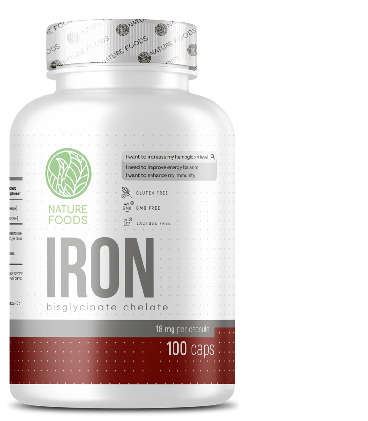 Nature Foods Iron Bisglycinate 18 mg, 100 капсул